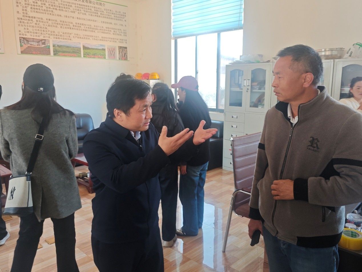 在座谈交流环节,各位党员与昆明土土农业科技开发有限公司总经理张山军,围绕中药材产业发展痛点、科技需求展开深入研讨交流。本次主题党日活动创新将党课课堂延伸至田间地头,推动科技服务精准落地产业一线,全体党员以实际行动践行“把论文写在云岭大地上”的科研使命与责任担当。下一步,中药材党支部将持续通过“寻甸县农民院士科技服务站”深化与当地中药材企业的合作,建立常态化科技服务机制,推动党建工作与产业服务同频共振,让党旗在乡村振兴一线高高飘扬。