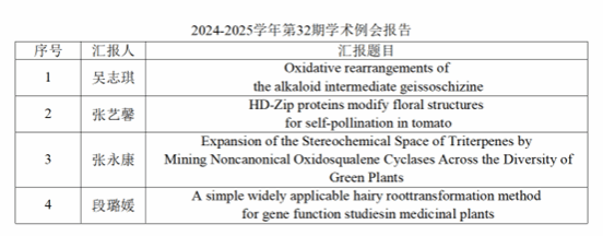 本周中心的学术例会将于2025年5月28日星期三19:00在西南生物多样性实验室C1-24会议室线下进行,将由吴志琪、张艺馨、张永康、段璐媛四位同学进行文献汇报,请中心各位老师和同学准时参加,也诚挚邀请全校各位有兴趣的老师和同学们参加,一起交流学习。