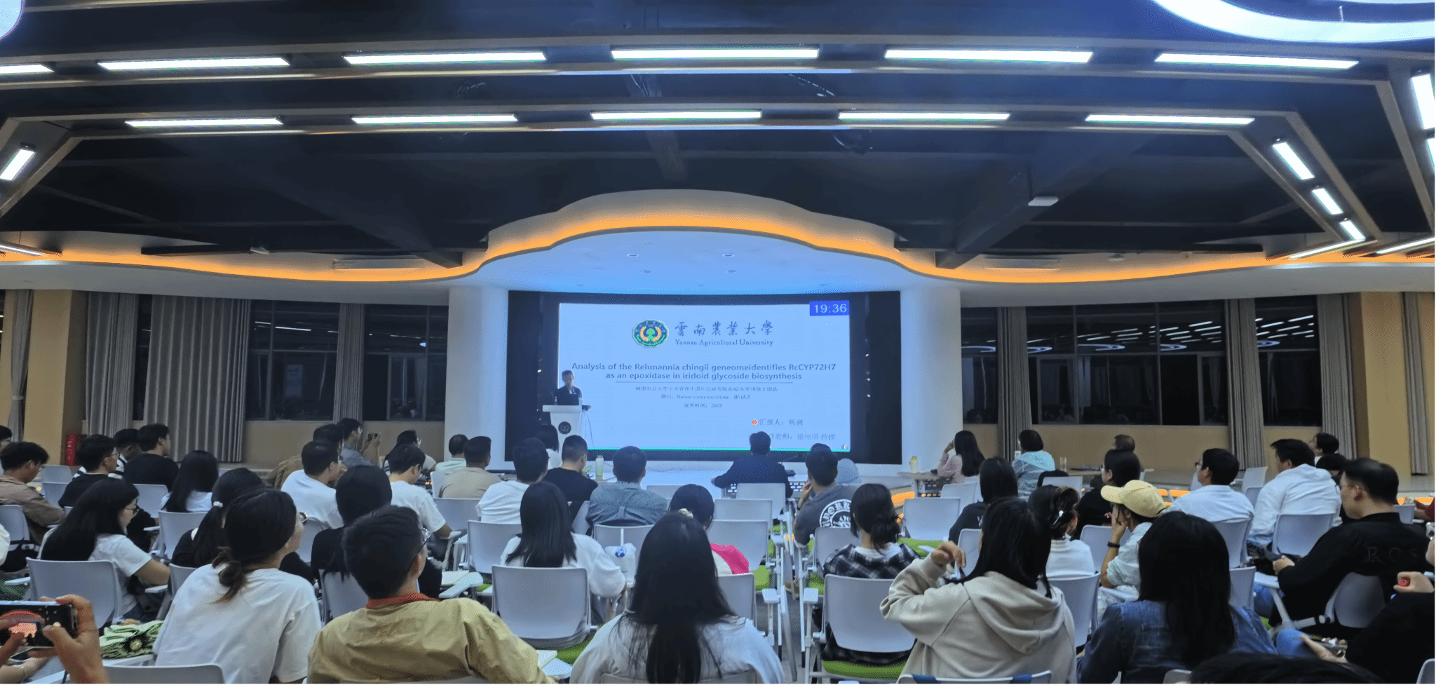 杨润博士以“Analysis of the Rehmannia chingii geneome identifies RcCYP72H7 as an epoxidase in iridoid glycoside biosynthesis”为题进行文献分享报告。该文献研究聚焦天目地黄(Rehmannia chingii)基因组与环烯醚萜苷合成研究,组装出1.169Gb 端粒到端粒(T2T)无间隙基因组,确认其为二倍体(2n=2x=28)。研究发现 MEP 途径和环烯醚萜途径的结构基因主要在叶片表达,8 号染色体存在细胞色素 P450 基因簇,其中RcCYP72H7为桃叶珊瑚苷环氧化酶,可催化桃叶珊瑚苷生成梓醇。该高质量基因组为研究环烯醚萜苷生物合成、地黄属演化提供关键资源,还能助力地黄药用相关性状的遗传改良。