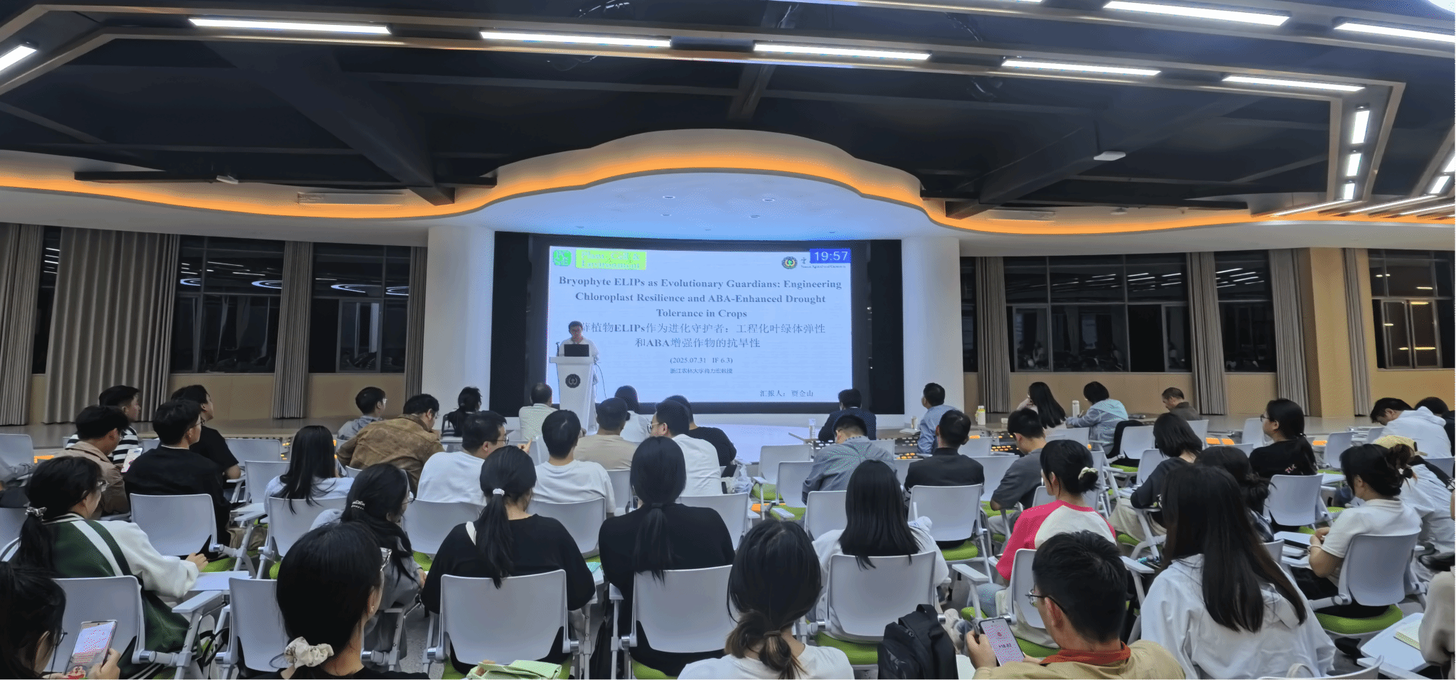 贾金山博士以“Bryophyte ELIPs as Evolutionary Guardians: Engineering Chloroplast Resilience and ABA‐Enhanced Drought Tolerance in Crops”为题进行文献分享报告。该文献研究发现,苔藓植物通过分散/串联重复大量扩增早期光诱导蛋白(ELIPs)基因家族,形成特有的Group I功能群。其启动子区ABA响应元件(ABRE)和干旱诱导元件(MBS)数量达拟南芥的3倍。ELIPs通过三重机制提升抗旱性:稳定类囊体膜结构防止光氧化损伤,清除有害活性氧(ROS),并协同ABA信号促进根系重塑。该研究首次构建"ABA-ELIP-ROS"三方调控模型,揭示苔藓作为4.5亿年“活化石”淬炼的核心抗旱机制,为作物抗逆育种提供新策略。