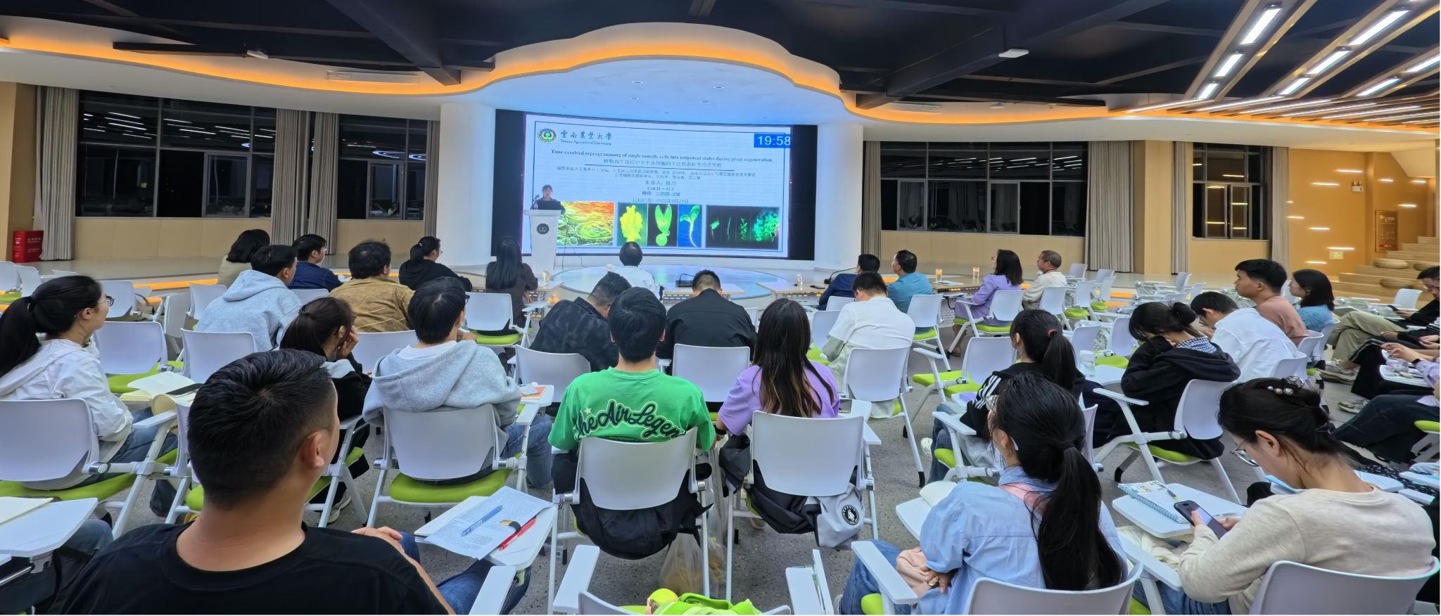 陈丹博士以“Time-resolved reprogramming of single somatic cells into totipotent states during plant regeneration”为题进行文献分享报告。该研究发现,全能性调控因子LEC2与气孔发育关键因子SPCH协同作用,激活生长素合成通路,使原本发育为气孔的前体细胞积累生长素,脱离原发育路径,转变为全能干细胞。该研究利用前沿技术记录细胞命运重塑路径,揭示关键命运分岔点,明确了一条由生长素驱动、转录调控,联系气孔前体细胞与体细胞胚胎发生过程的发育路径。该研究结果为作物遗传改良与高效再生提供全新理论支撑。