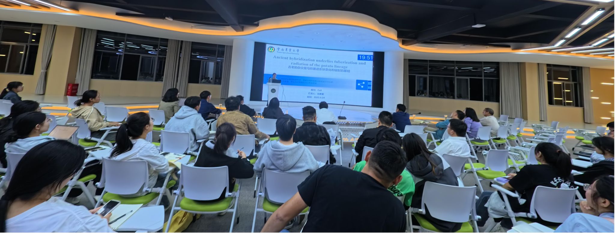 徐素素博士以“Ancient hybridization underlies tuberization and radiation of the potato lineage”为题进行文献分享报告。该研究首次发现马铃薯的同倍体杂交物种形成,马铃薯起源于一次古杂交事件,并证明新器官薯块的形成是由于不同亲本等位基因的重新组合的结果,这为理解杂交在物种形成过程中的关键作用提供了新范式,破解了马铃薯物种多样性之谜,并为后续马铃薯遗传育种提供了全新的理论视角。